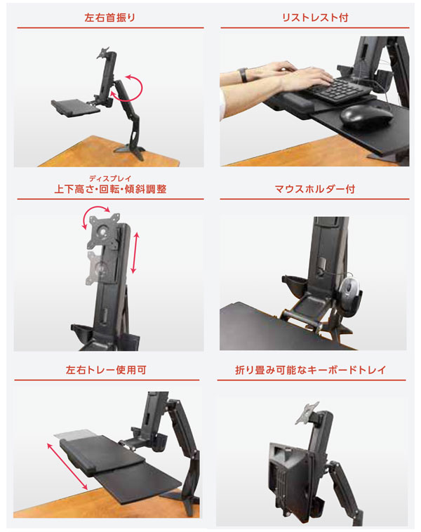 ディスプレイアーム・キーボードトレイが1台で